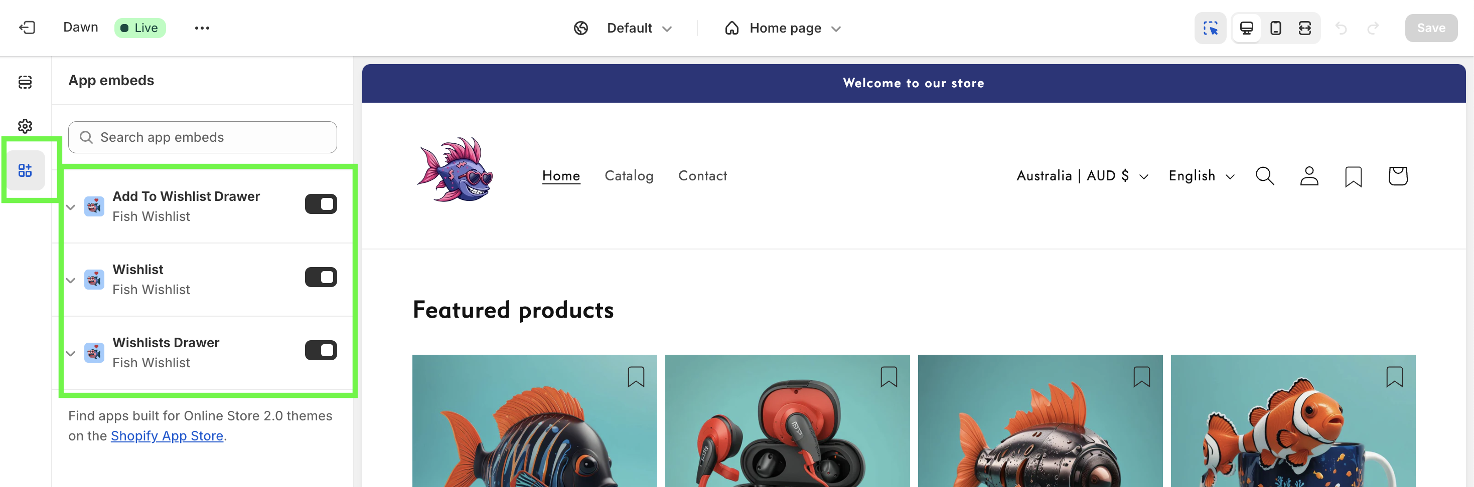 ### Enable our Fish Wishlist app embeds